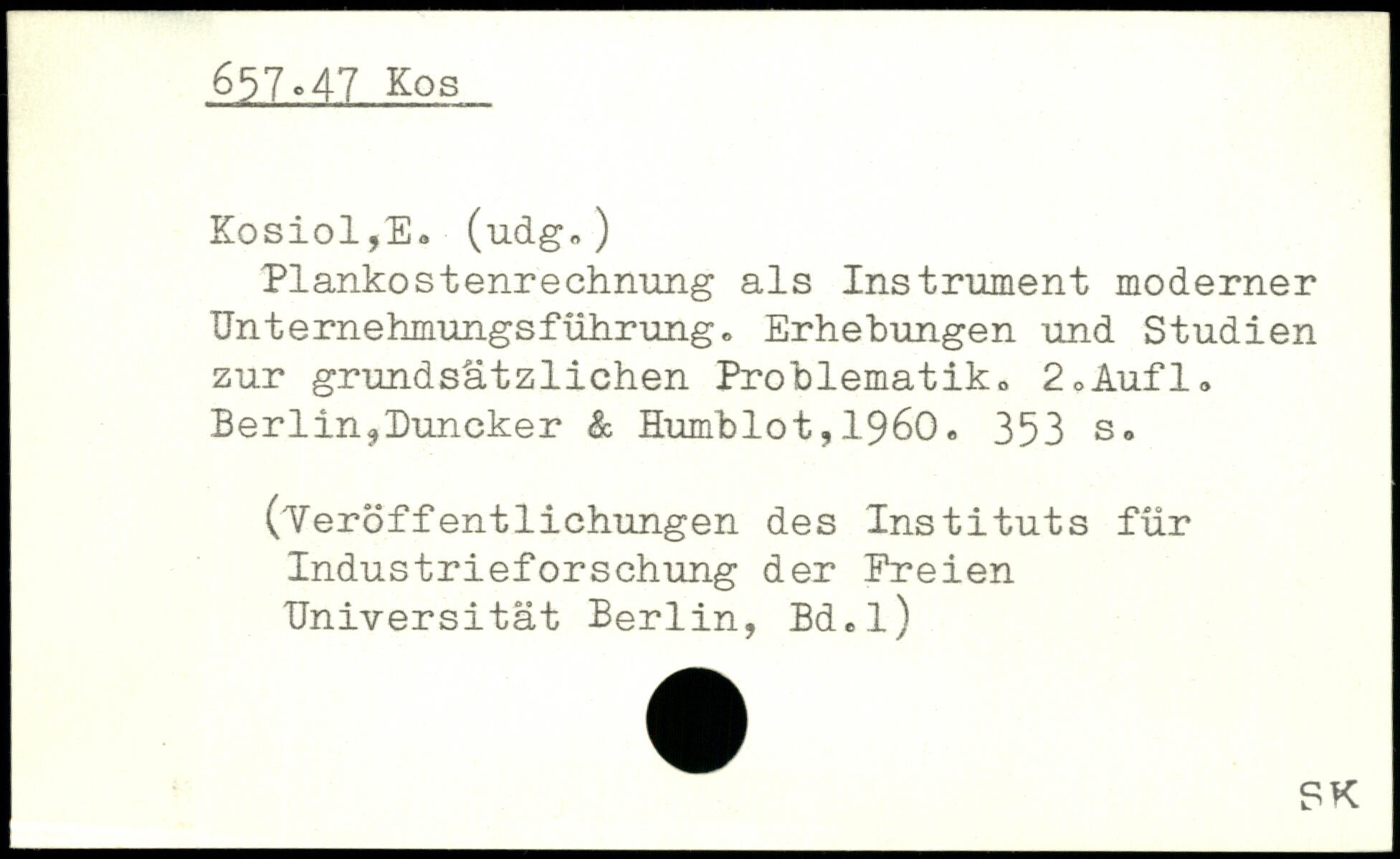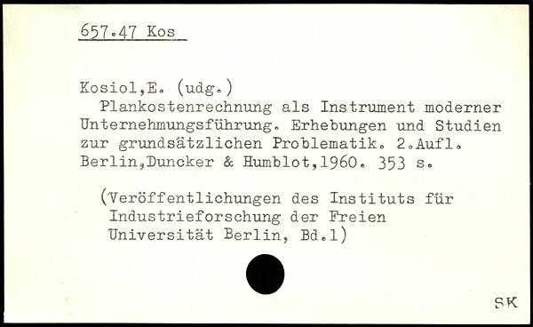 Plankostenrechnung als Instrument moderner Unternehmungsführung, Erhebungen und Studien zur grundsätzlichen Problematik, 2oAufl, Berlin ,l)uncker & Humblot,1960.