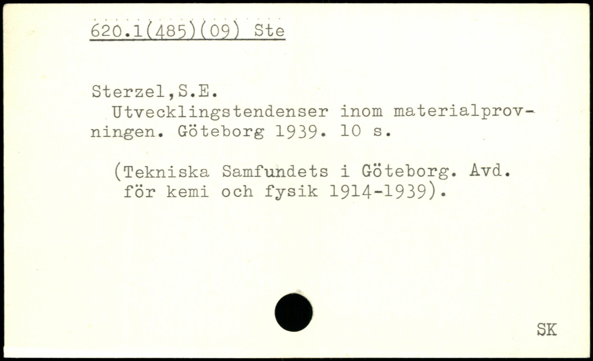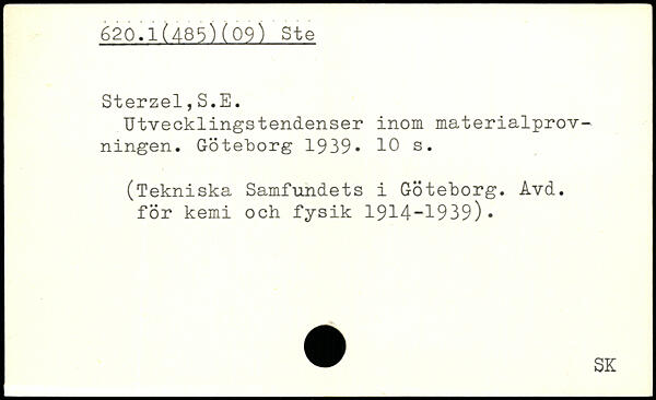 Utvecklingstendenser inom materialprovningen. Göteborg 1939