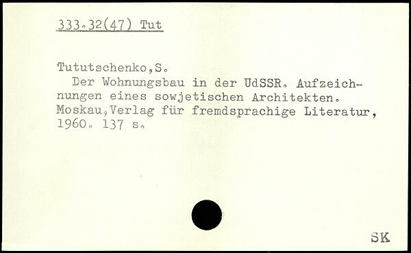Der Wohnungsbau in der UdSSR, Aufzeich, nungen eines sowjetischen