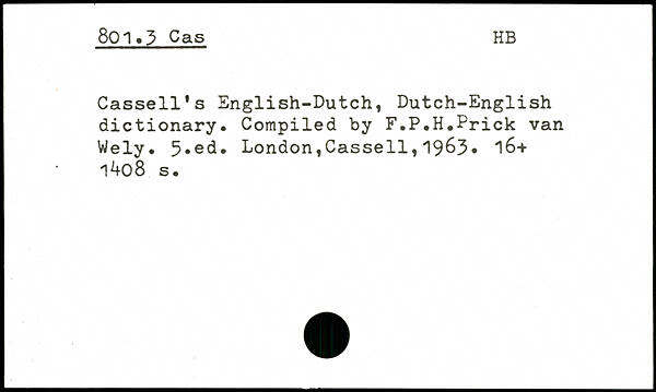 Cassell's English-Dutch, Dutch-English dictionary. Compiled by F.P.H.Prick van Wely. 5.ecl.
