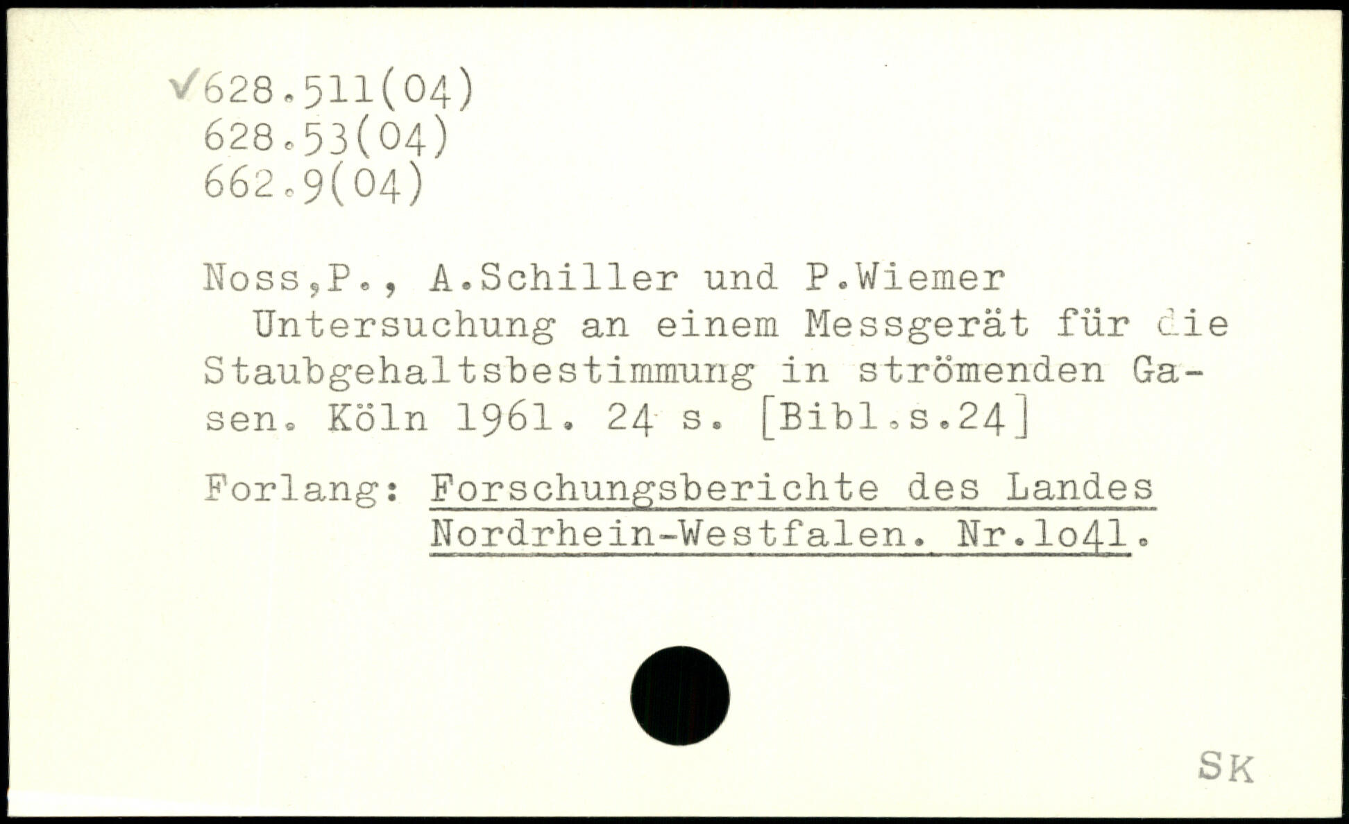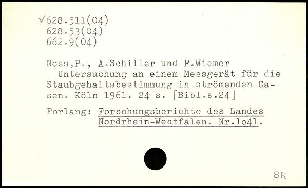 Noss?P,, A.Schiller und P.Wiemer Untersuchung an einem Messgerät für die Staubgehaltshestimmung in strömenden Gasen