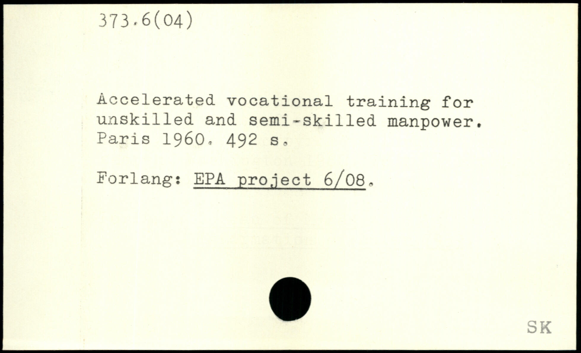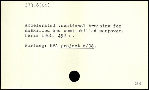 Accelerated, vocational training for unskilled and semi-skilled manpower.
