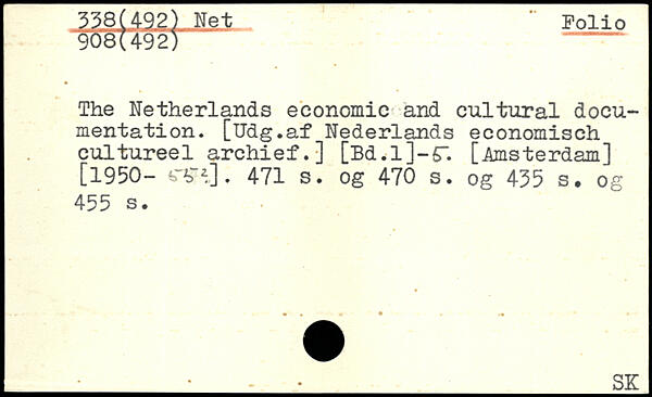 The Netherlands economic and cultural documentation. [Udg.af Nederlands economisch cultureel archief.-] [Bd.l]-£". [Amsterdam] [1950- srç.].