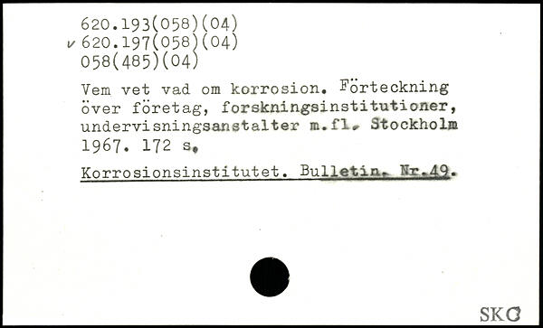 Vem vet vad om korrosion. Forteckning over foretag, forskningsinstitutioner, undervisningsanstalter m.fl#