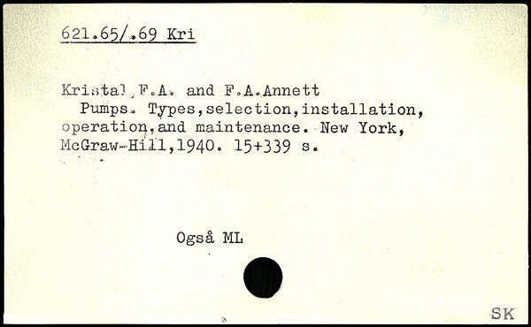 Krista! T.A. and F,A.Annett Pumps. Types,selection,installation, operation.and maintenance.