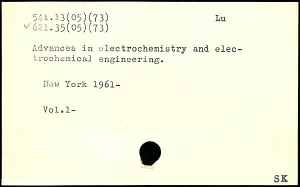 Advances in electrochemistry and electrochemical engineering1. Hew York 19 61 - Vol.l-