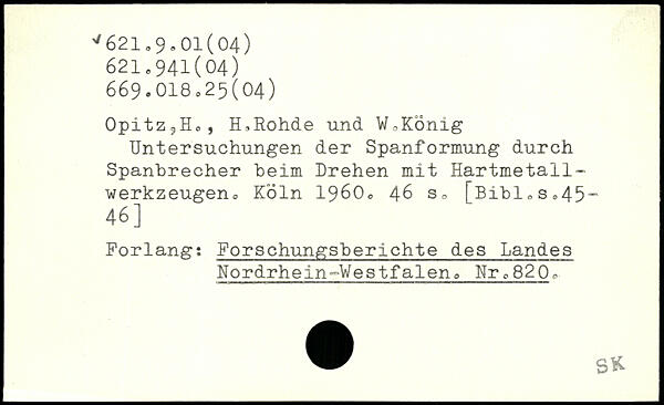 0pitz?Ho, H,Rohde und W,König Untersuchungen der Spanformung durch Spanbrecher beim Drehen mit Hartmetall-Werkzeugen