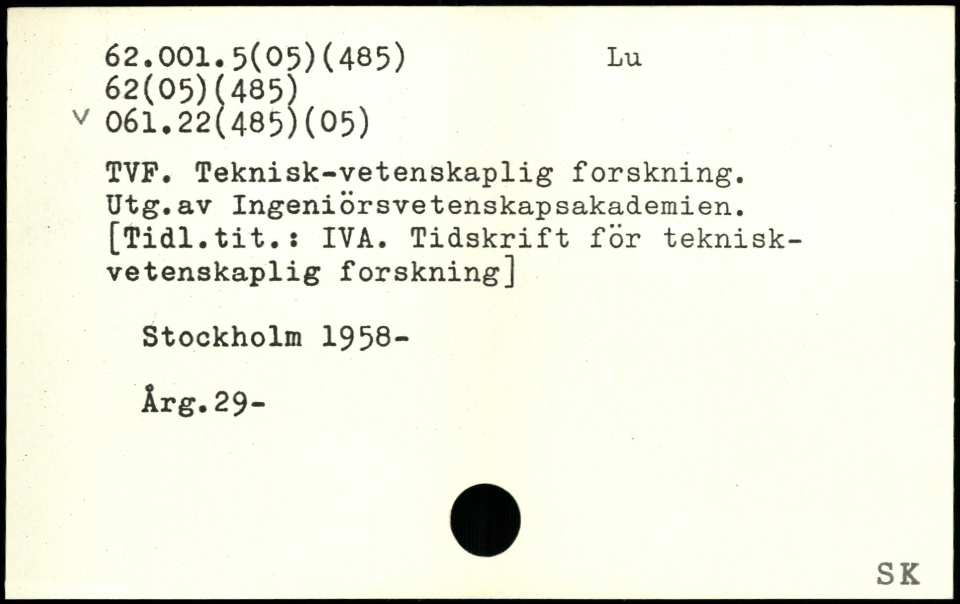 TVF. Teknisk-vetenskaplig forskning. Utg.av Ingeniörsvetenskapsakademien. [Tidl.tit.s IYA. Tidskrift för tekniskvetenskaplig forskning]
