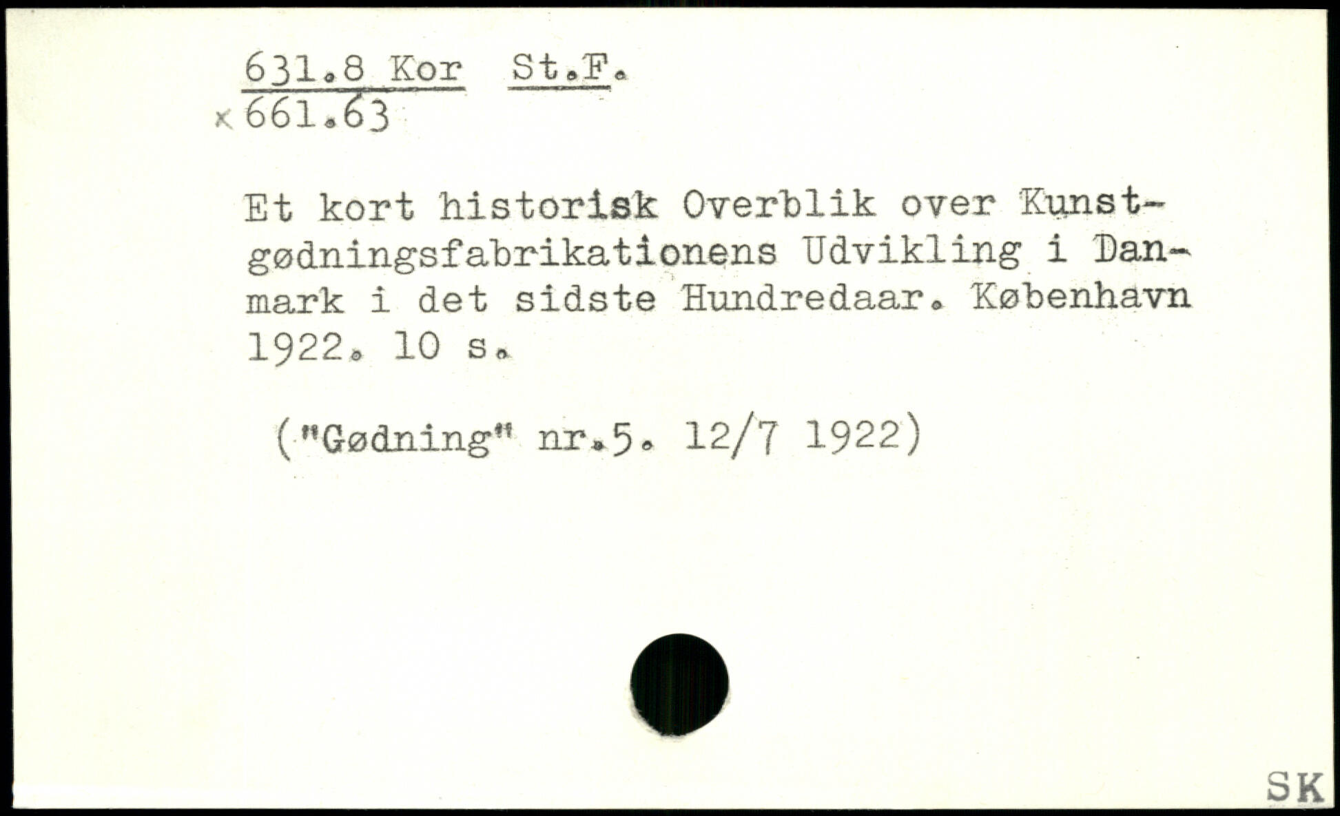 Et kort historisk Overblik over K^nst-gødningsfabrikationens Udvikling i Danmark i det sidste Hundredaar