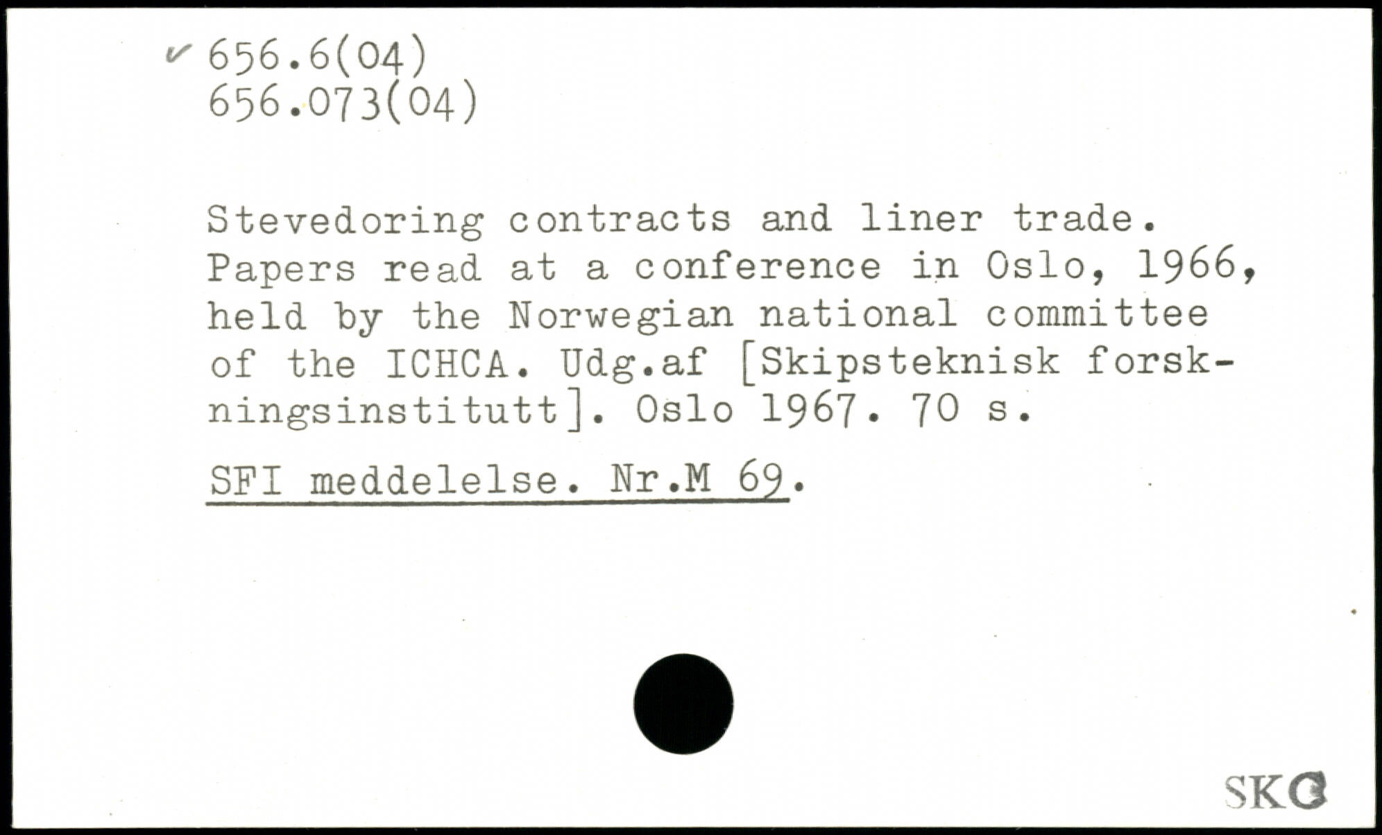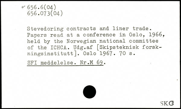 Stevedoring contracts and liner trade. Papers read at a conference in Oslo, 1966, held hy the Norwegian national committee of the ICHCA. Udg.af [Skipsteknisk forskningsinsti tutt]. Oslo 1967.