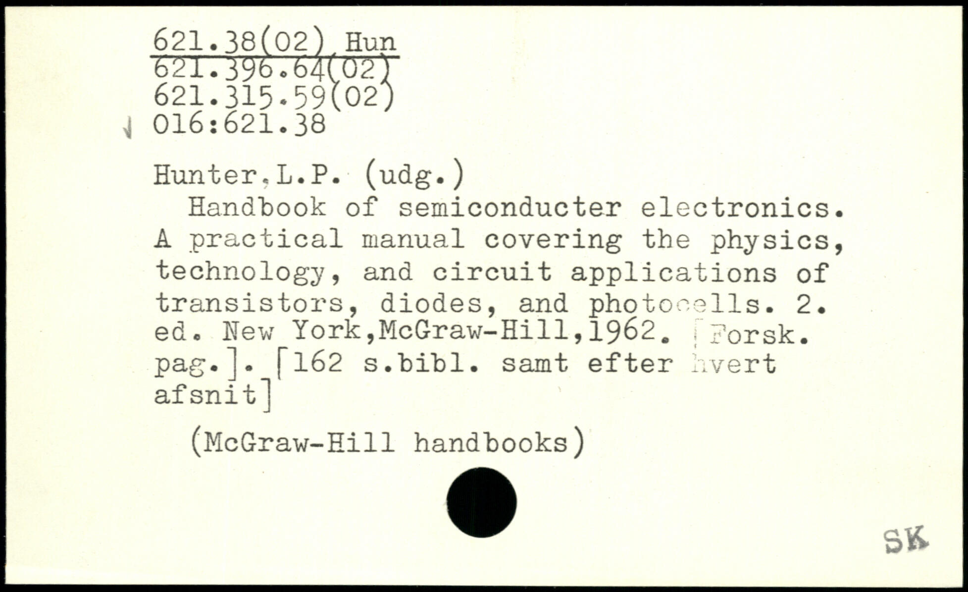 Handbook of semiconducter electronics. A practical manual covering the physics, technology, and circuit applications of transistors, diodes, and photocells.