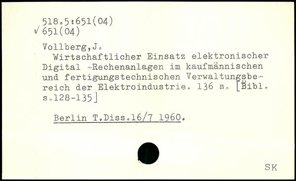 Wirtschaftlicher Einsatz elektronischer Digital -Rechenanlagen im kaufmännischen und fertigungstechnischen Verwaltungsbe-reich der Elektroindustrie