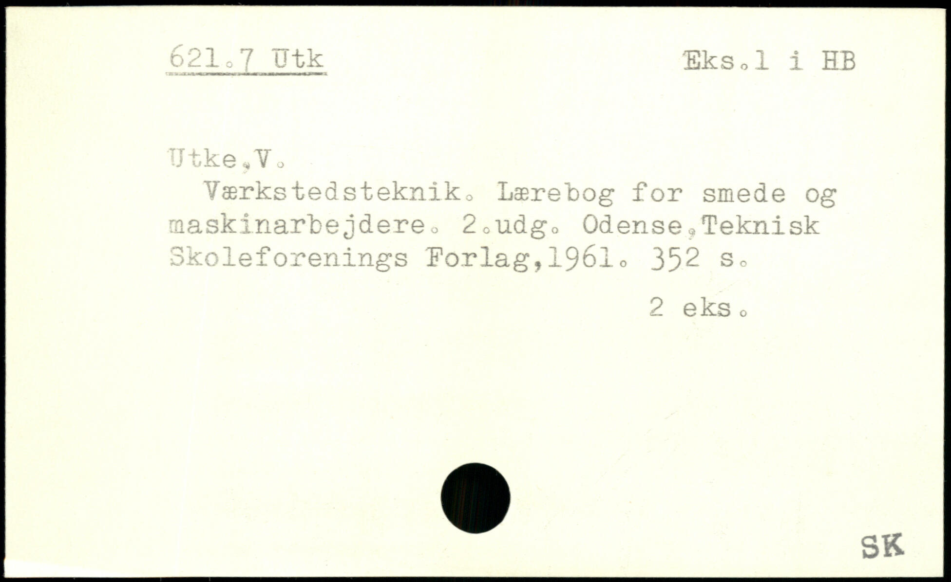 Værkstedstekniko Læretog for smede og maskinarbejdere o 2oUdg. Odense?Teknisk Skoleforenings Eo.r lag, 1961 <>