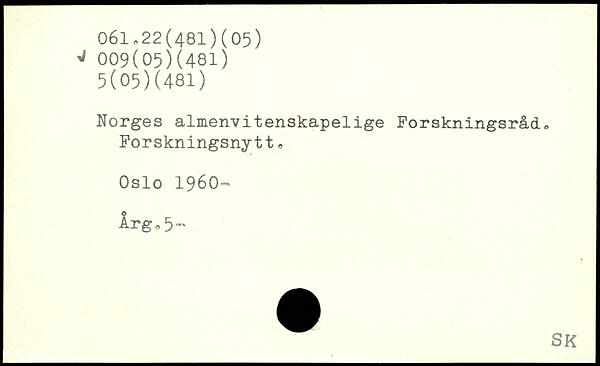 Norges almenv i tenskapelige Forskningsråd., Forskningsnytt , Oslo 1960-, Årg,5~