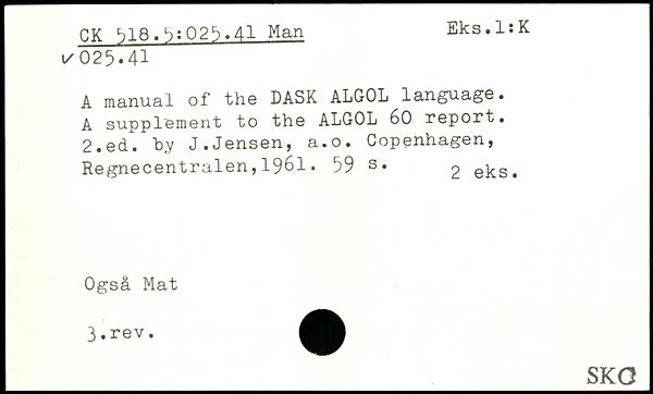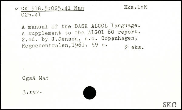 A manual of the DASK ALGOL language. A supplement to the ALGOL 60 report.