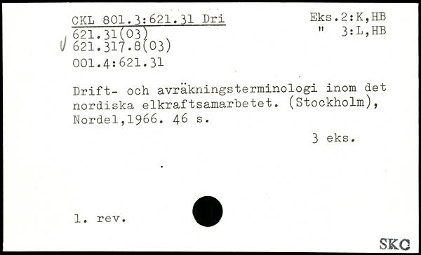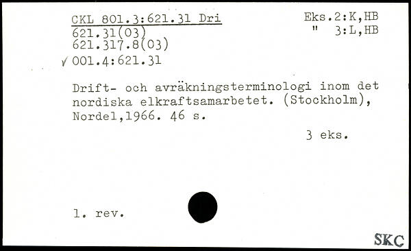 Drift- och avräkningsterminologi inom det nordiska elkraftsamarbetet. (Stockholm), Nordel,1966.