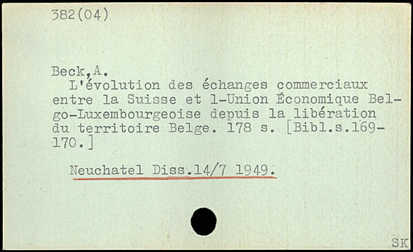 L’évolution des échanges commerciaux entre la Suisse et 1-Union Économique Bel-go-Luxembourgeoise depuis la libération du territoire Belge. Î