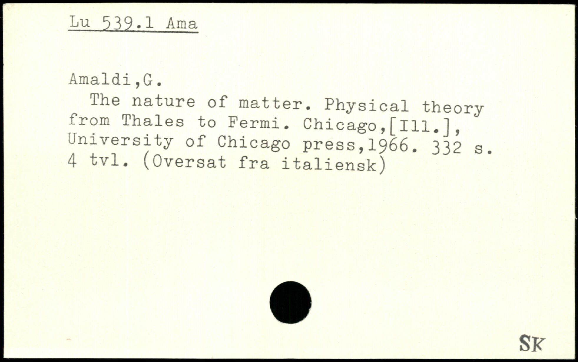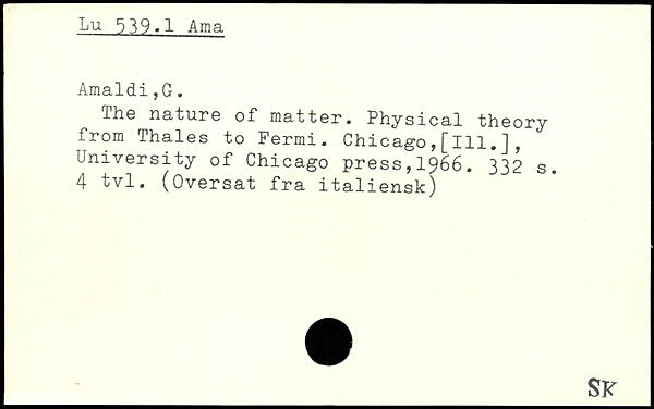 The nature of matter. Physical theory from Thales to Fermi. Chicago,[111.], University of Chicago press,1966.