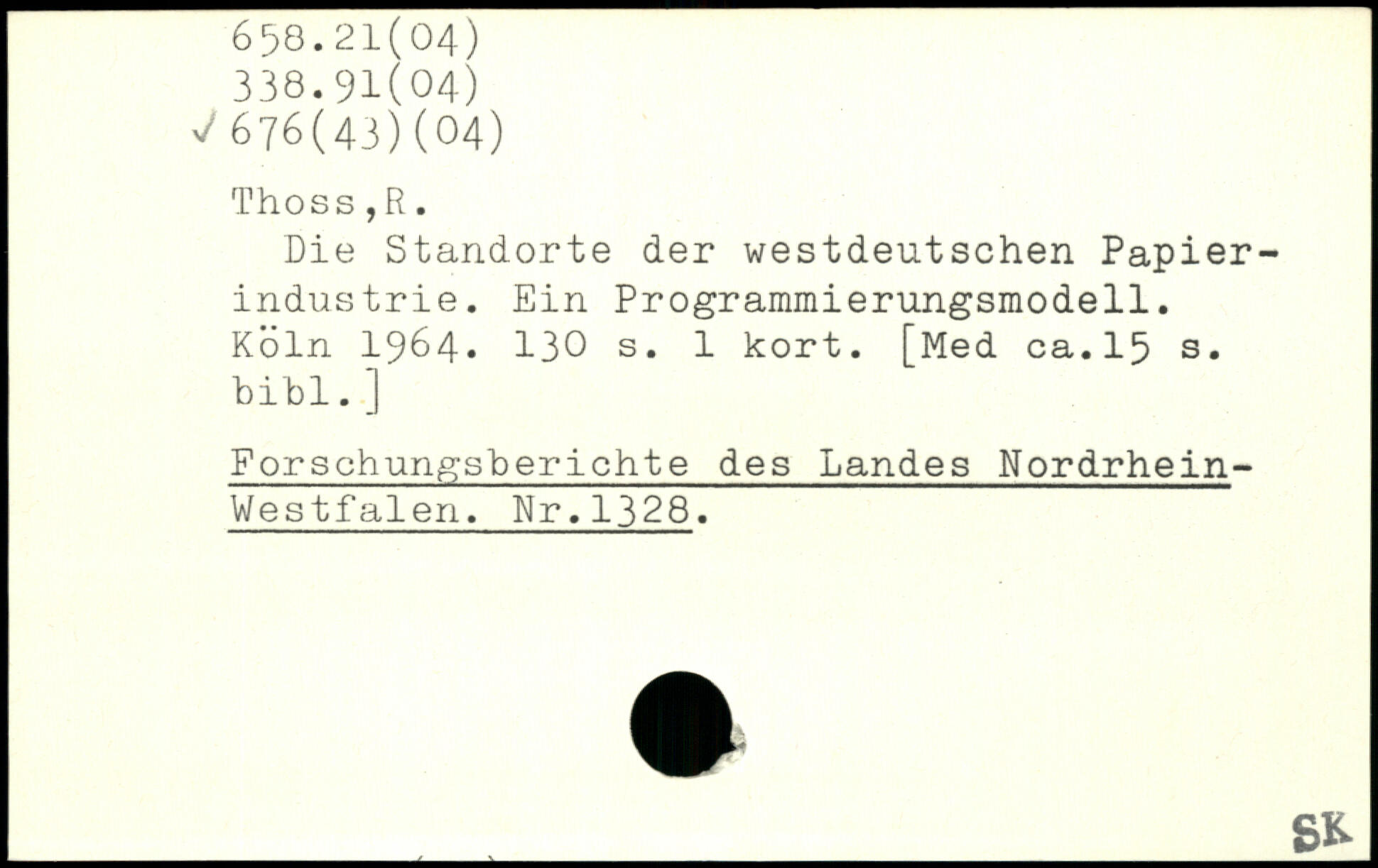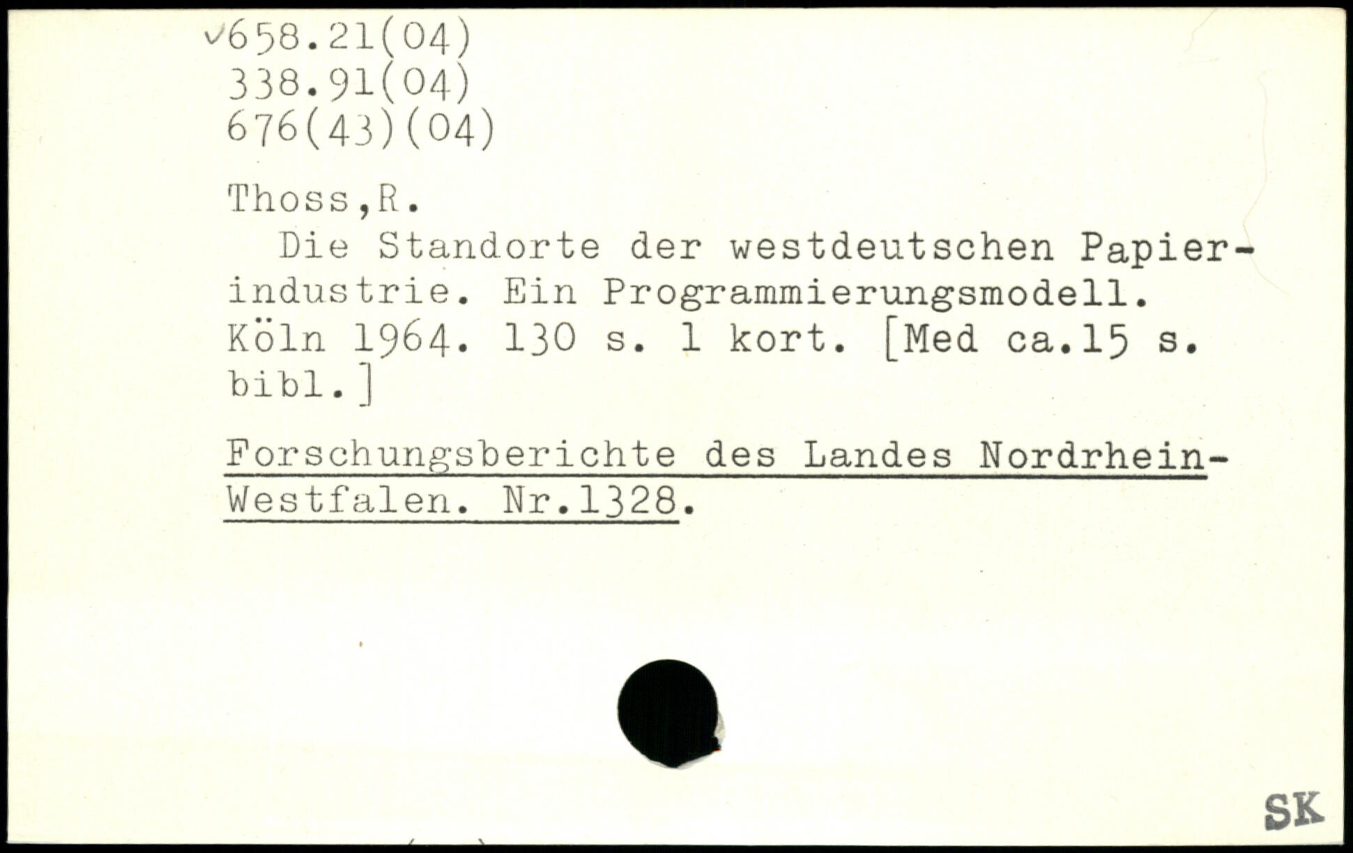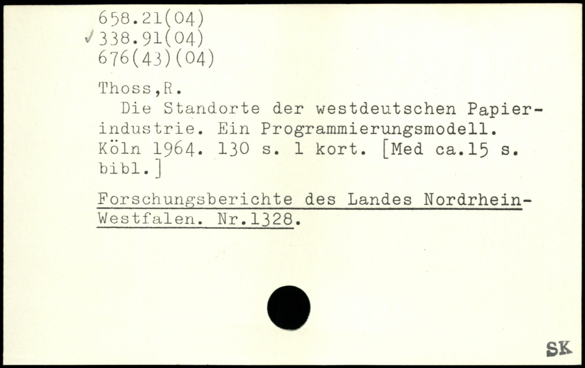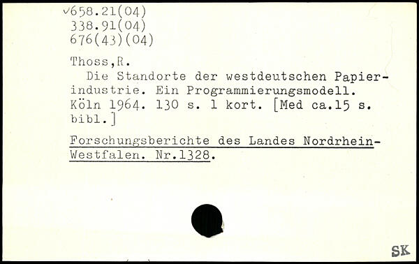 Die Standorte der westdeutschen Papierindustrie. Ein Programmierungsmodell.