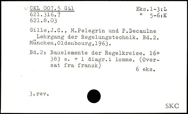 Gille,J.C., M.Pelegrin und. P.Decaulne ^Lehrgang der Regelungstechnik.