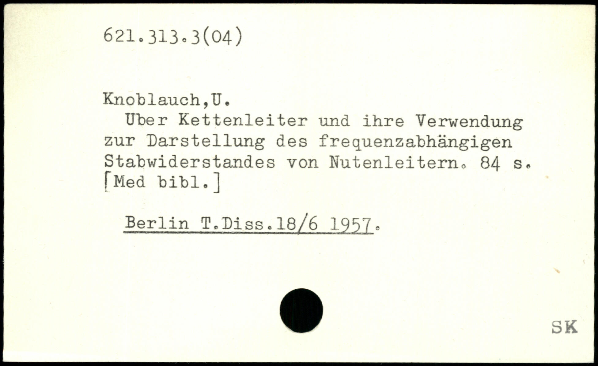 Uber Kettenleiter und ihre Verwendung zur Darstellung des frequenzabhängigen Stabwiderstandes von Nutenleiterno