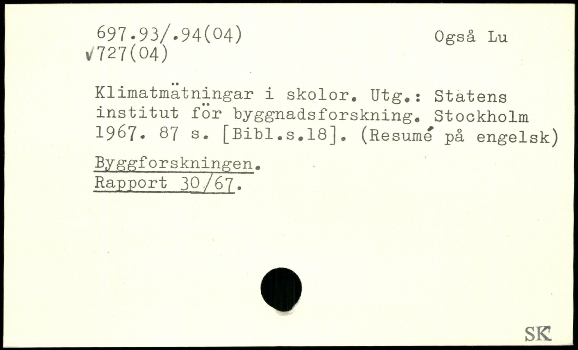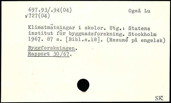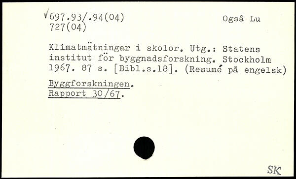 Klimatmatningar i skolor. Utg.: Statens institut for byggnadsforskning.