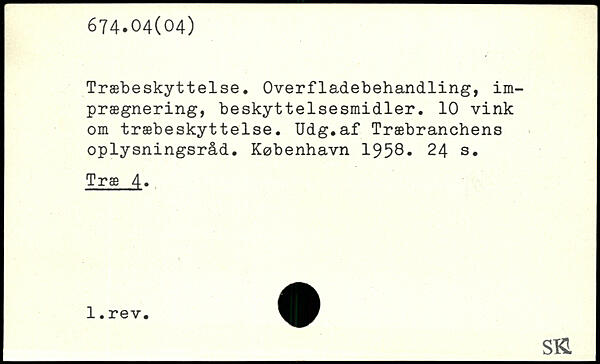 Træbeskyttelse. Overfladebehandling, imprægnering, beskyttelsesmidler. 10 vink om træbeskyttelse. Udg.af Træbranchens oplysningsråd.