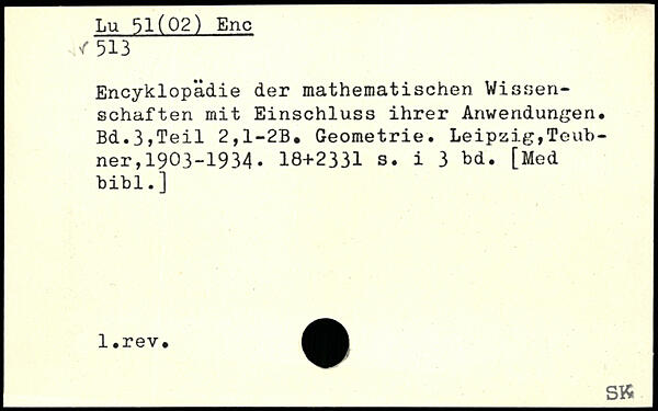 Encyklopadie der mathematischen Wissenschaften mit Einschluss ihrer Anwendungen.