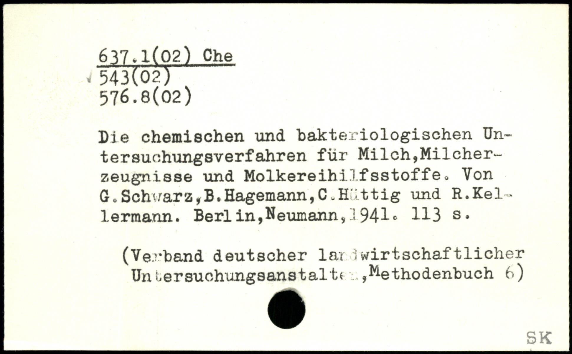 Die chemischen und bakteriologischen Un-tersuohungsverfahren für Milch,Milcherzeugnisse und Molkereihilfsstoffe, Von G.Schuarz,B.Hagemann,C.Hlttig und R.Kellermann.