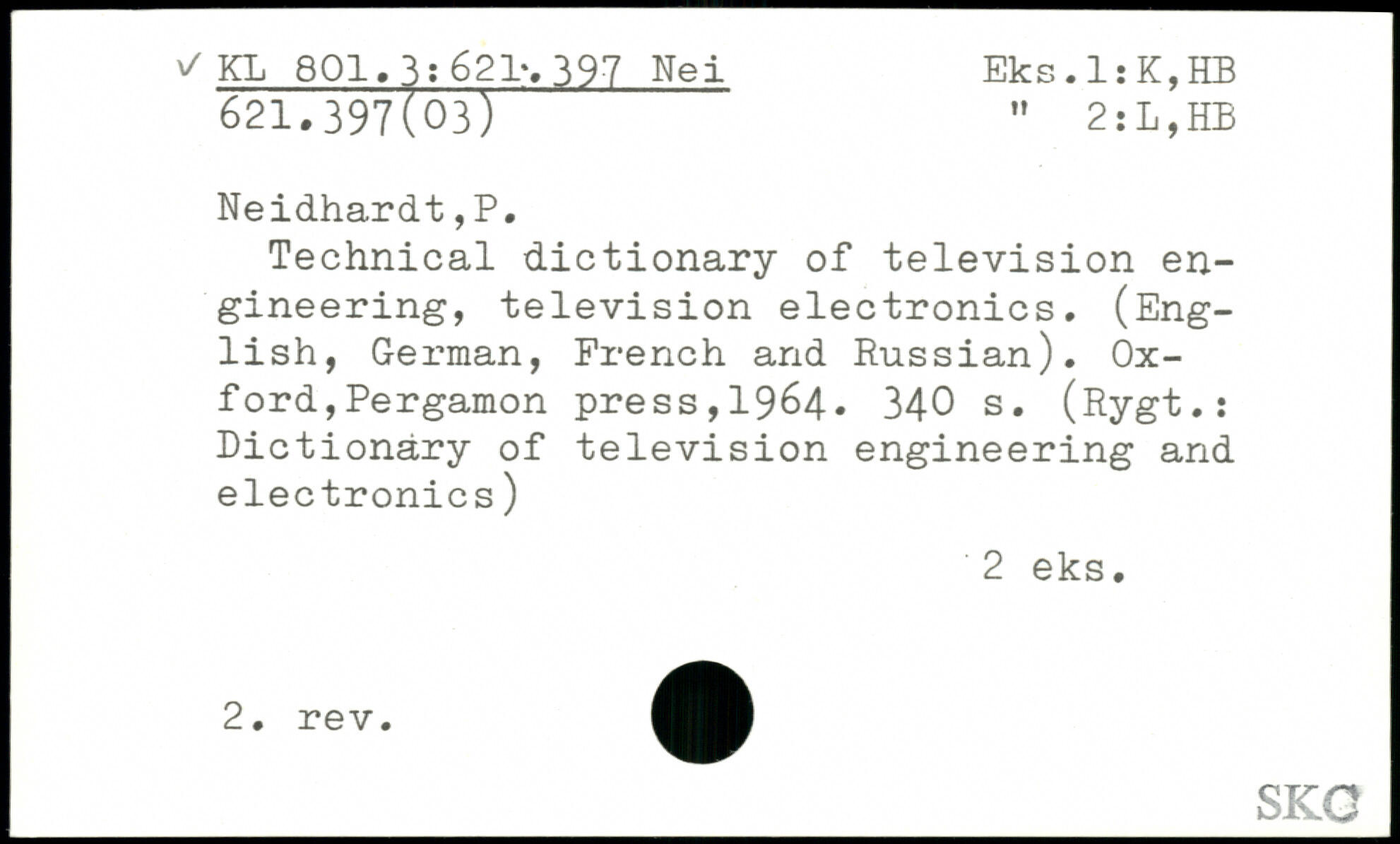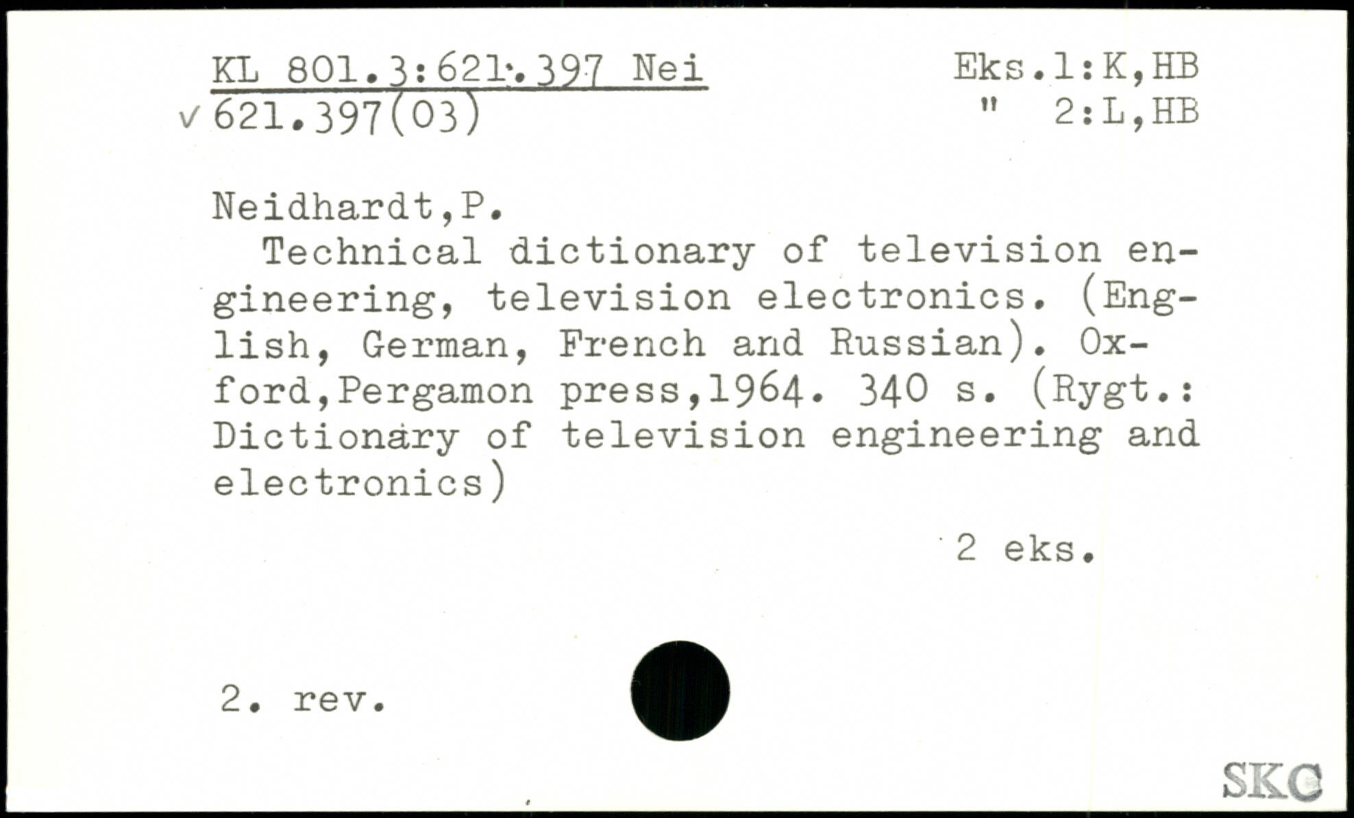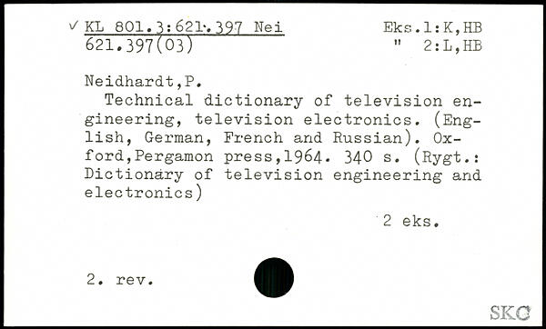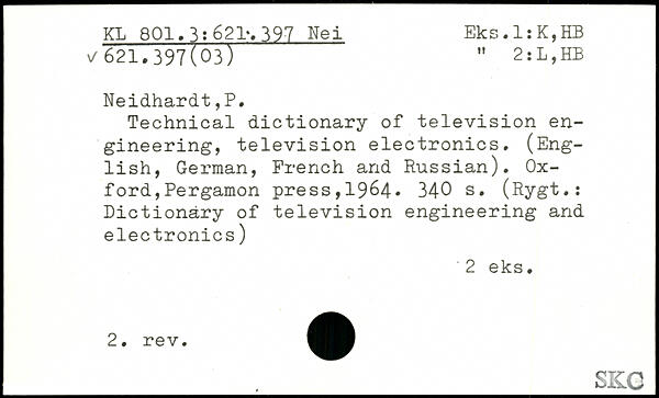 Technical dictionary of television engineering, television electronics. (English, German, French and Russian).