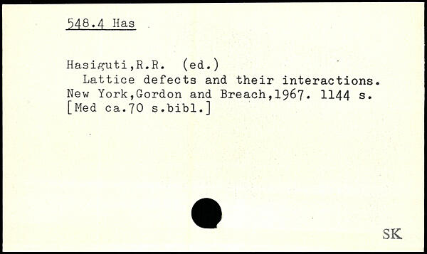 Hasi^uti,R.R. (ed.) Lattice defects and their interactions.