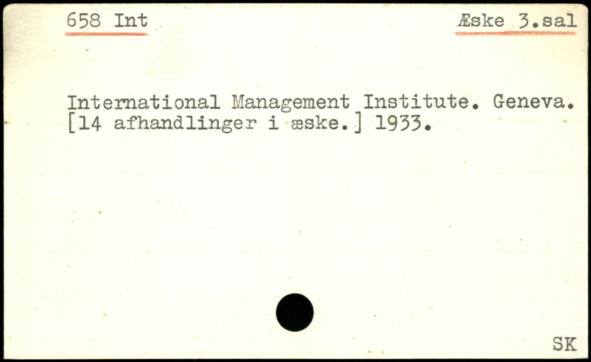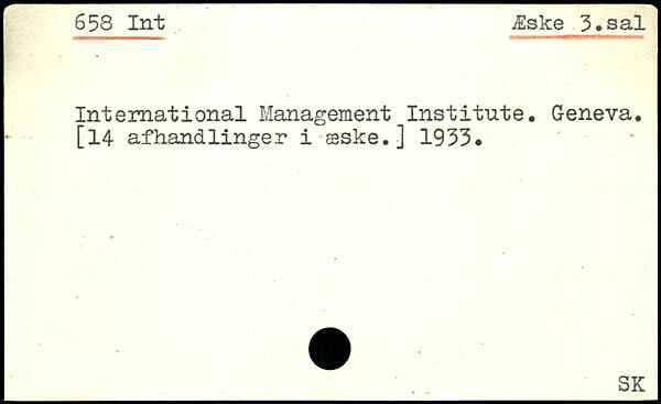 International Management Institute. Geneva. [14 afhandlinger i æske.] 1933. _ __SK