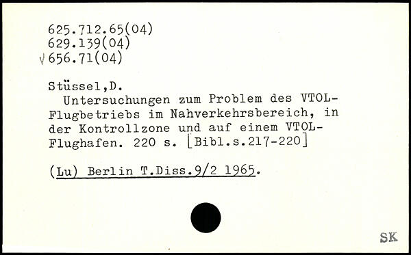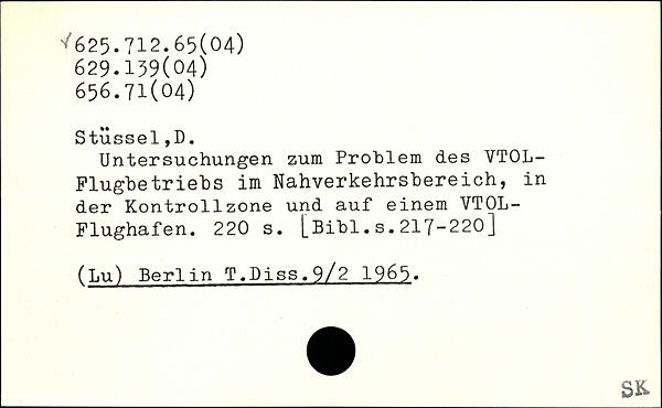 Untersuchungen zum Problem des VT0L-Flugbetriebs im Nahverkehrsbereich, in der Kontrollzone und auf einem VTOL-Flughafen.