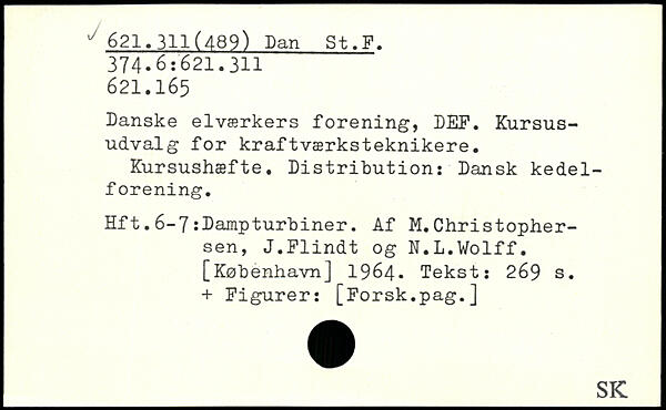 Danske elværkers forening, DEF. Kursusudvalg for kraftværksteknikere. Kursushæfte. Distribution: Dansk kedelforening. Hft.6-7iDampturbiner. Af M. Christopher-sen, J.Flindt og N.L.Wolff.