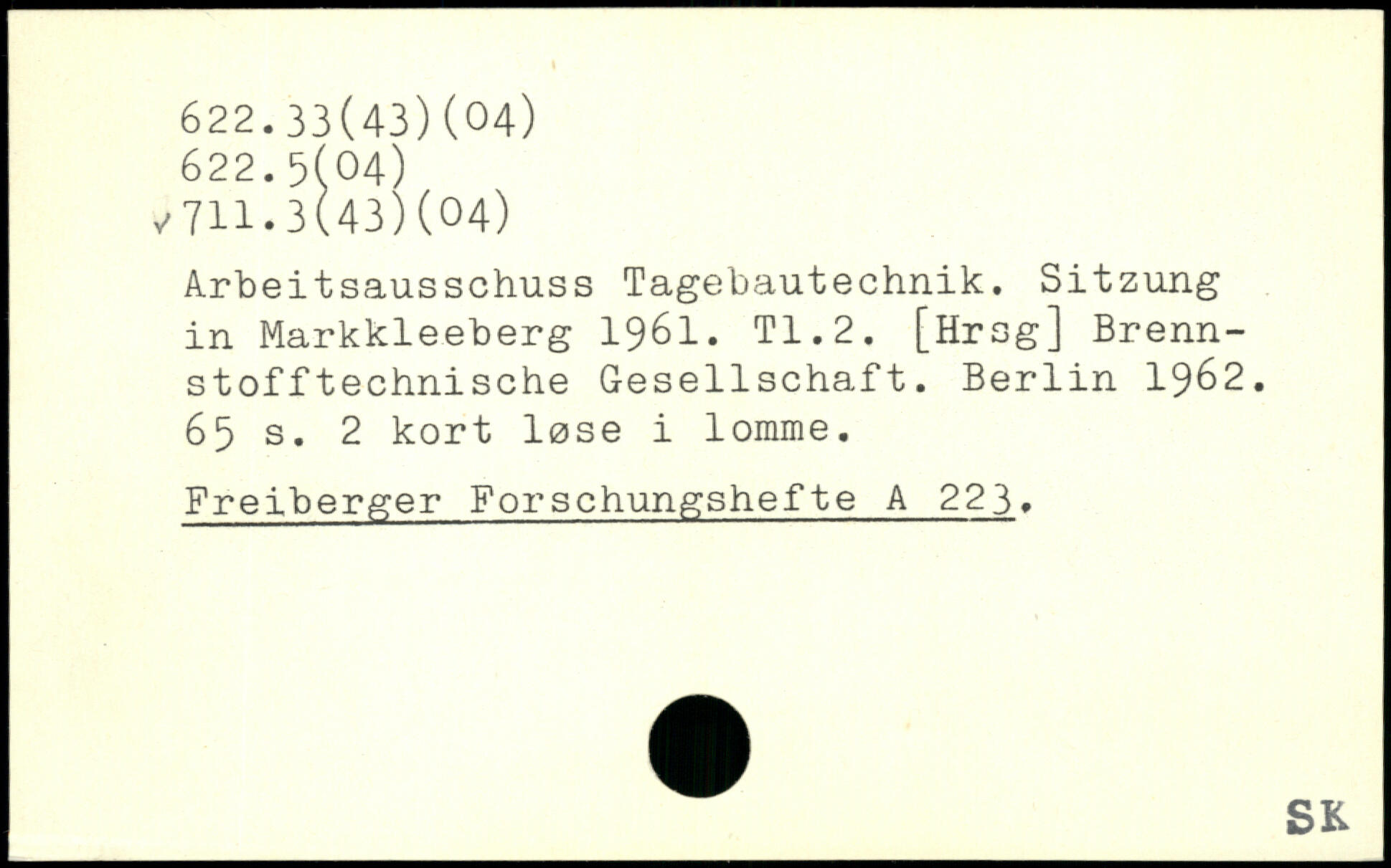 Arbeitsausschuss Tagebautechnik. Sitzung in Markkleeberg 1961. TI.2.