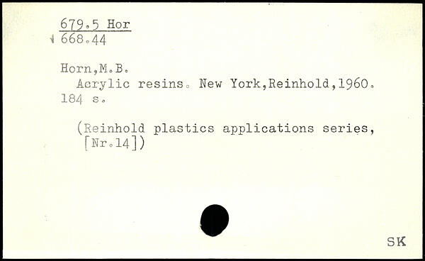 Acrylic resins, New York,Reinhold,1960, 184 s o