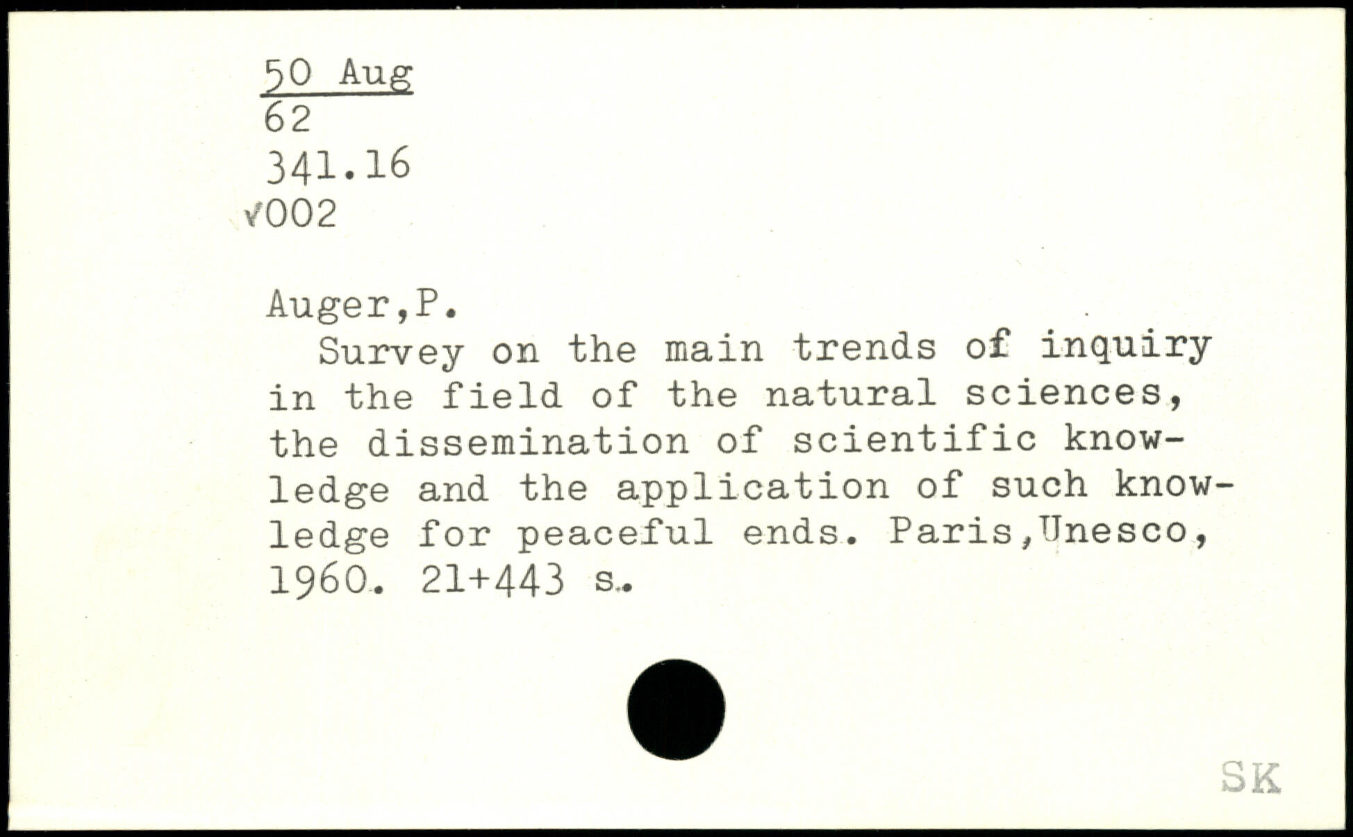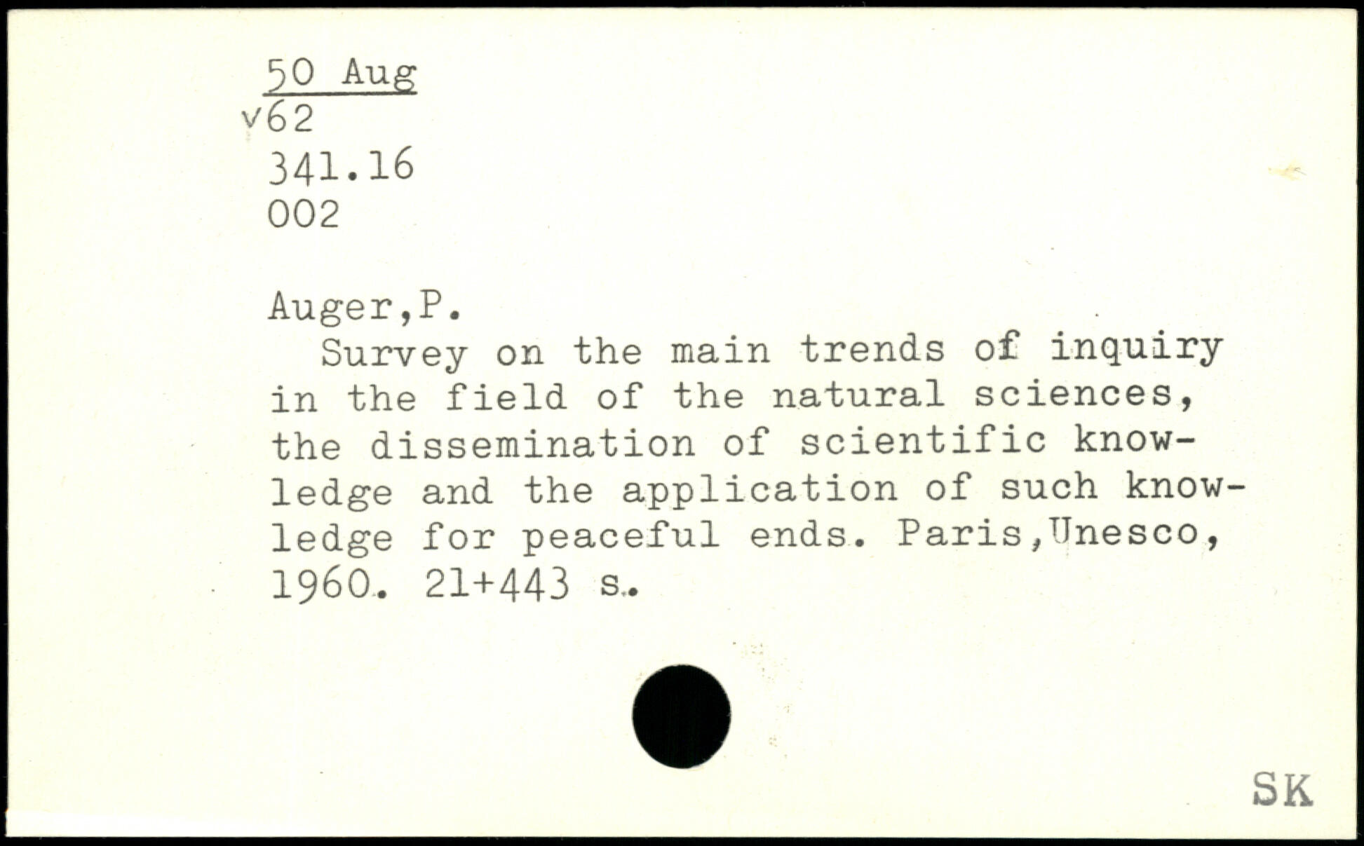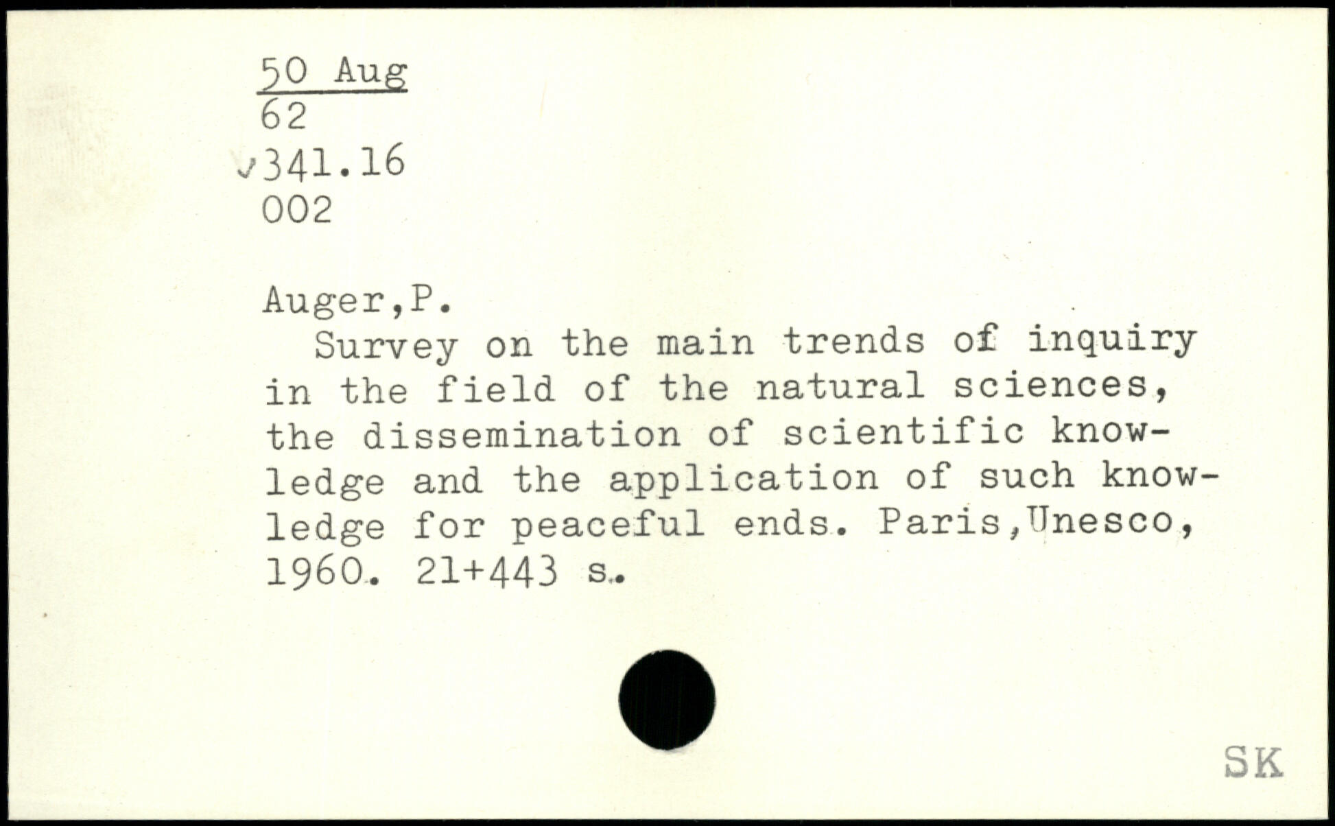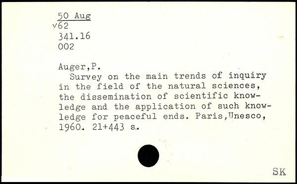 Survey on the main trends of inquiry in the field of the natural sciences, the dissemination of scientific knowledge and the application of such knowledge for peaceful ends.
