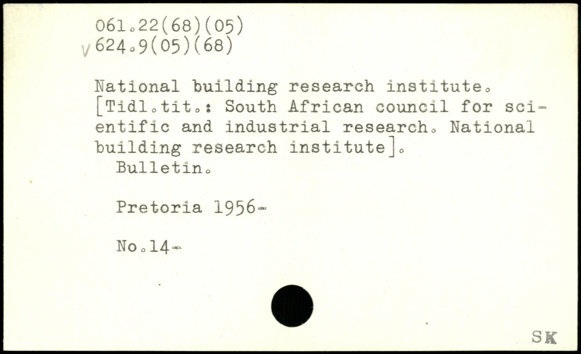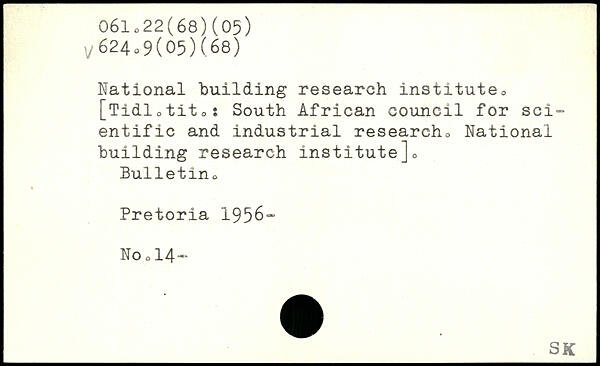 National “building research institute0 [TidlotitoS South African council for sci~ entific and industrial research,, National “building research institute], Bulletin,. Pretoria 1956“