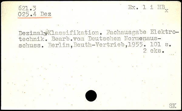 DezimalylCLassifikation. Eachausgabe Elektrotechnik. Bearb.vom Deutschen Normenausschuss.