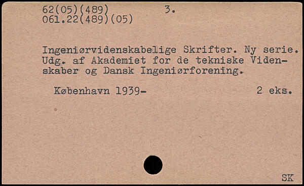 Inge.ni ørvidenskabelige Skrifter. Ny serie. Udg. af Akademiet for de tekniske Videnskaber og Dansk Ingeniørforening.