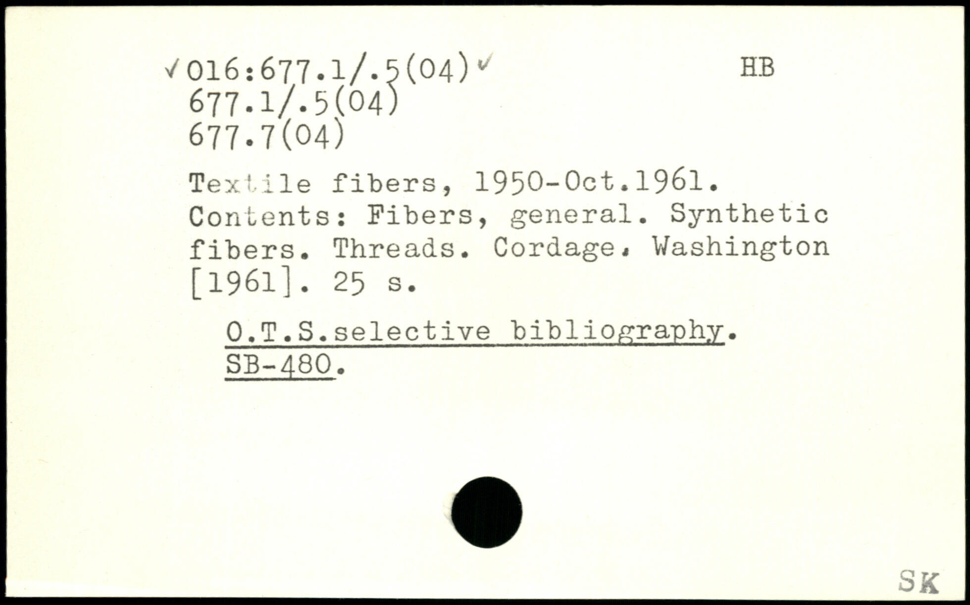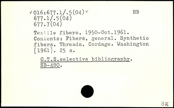 Textile fibers, 1950-Oct.1961. Contents: Fibers, general. Synthetic fibers. Threads. Cordage.