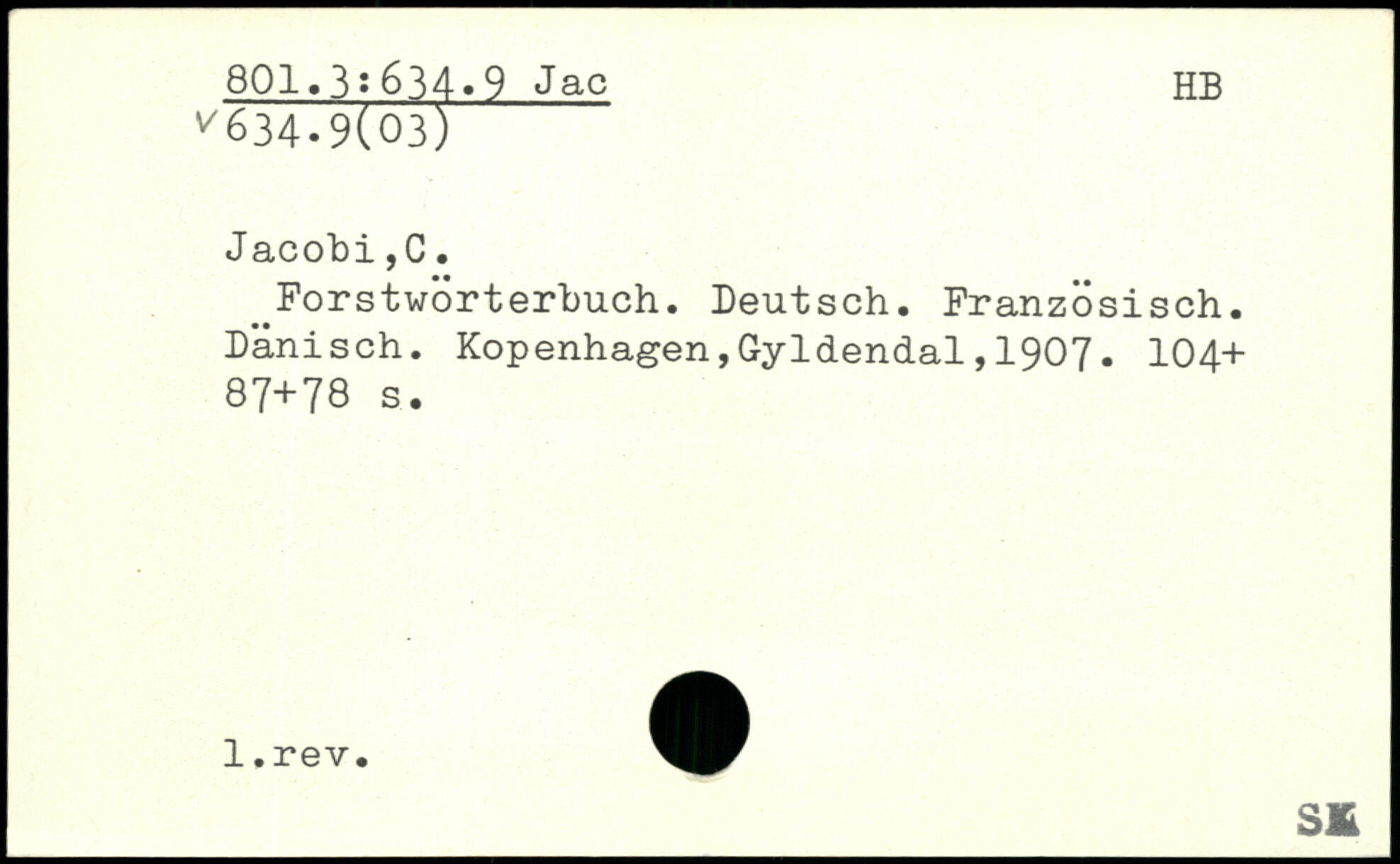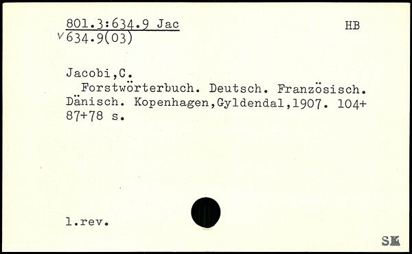 ^Forstwörterbuch. Deutsch. Französisch. Dänisch.