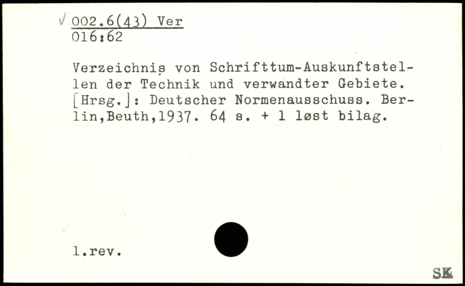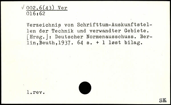 Verzeichnis von Schrifttum-Auskunftstellen der Technik und verwandter Gebiete. [Hrsg.]: Deutscher Normenausschuss.