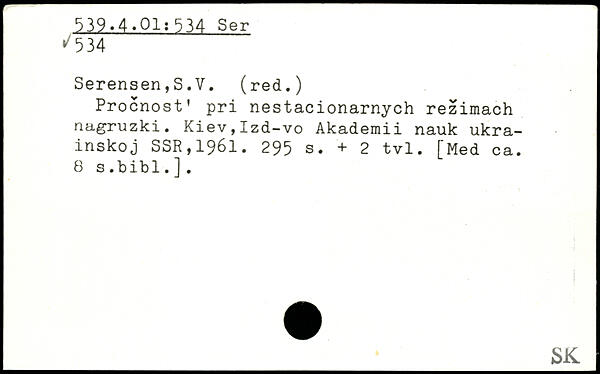 Procnost' pri nestacionarnych rezimach nagruzki. Kiev,Izd-vo Akademii nauk ukra-inskoj SSR,1961.
