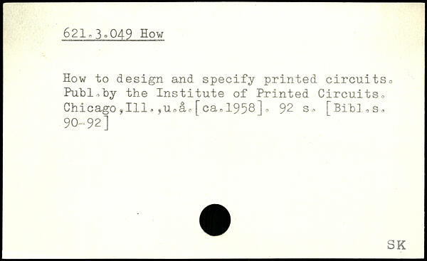 How to design and specify printed circuitso Publfby the Institute of Printed Circuits. Chicago,111.,UoLfca.1958].