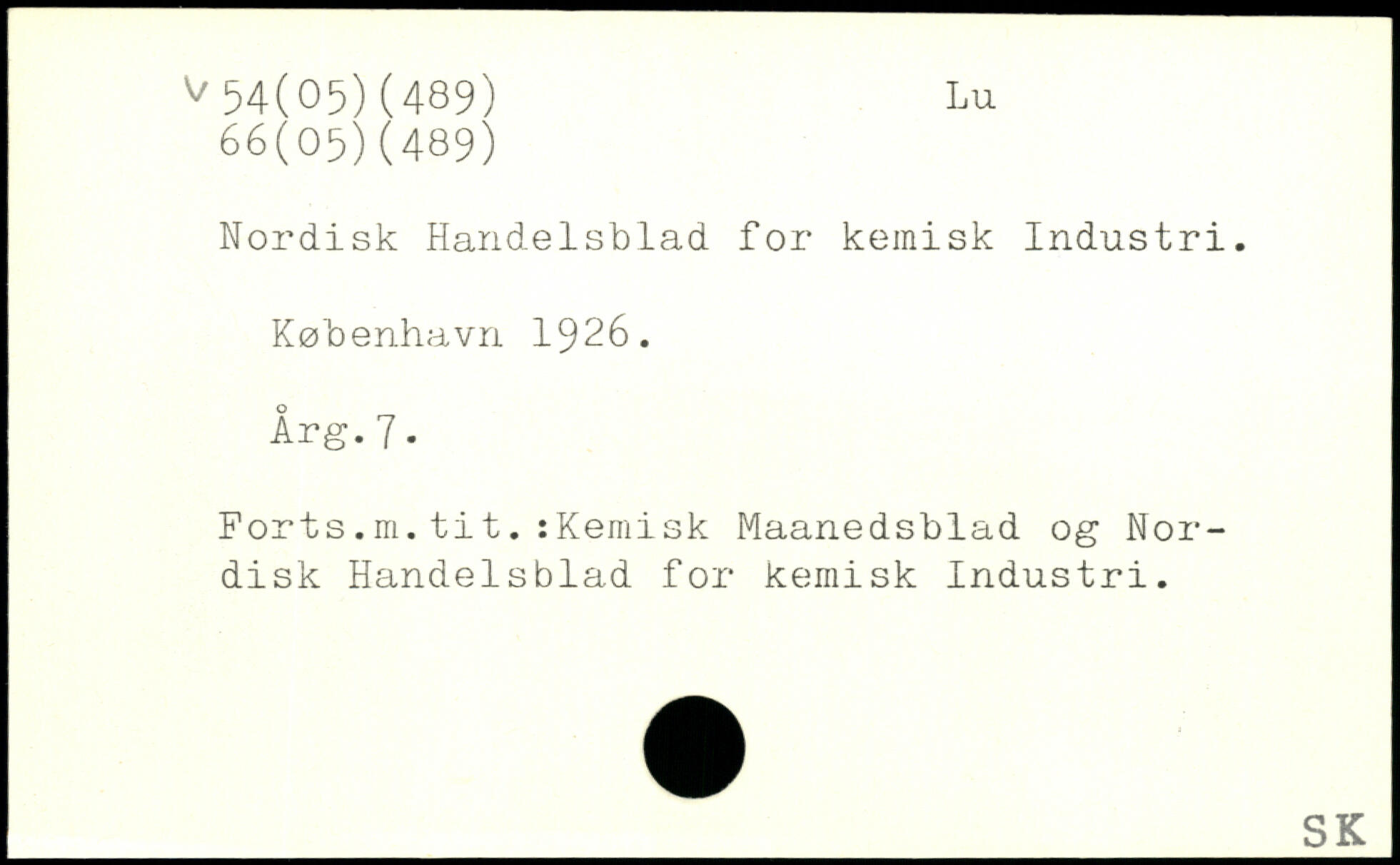 Nordisk Handelsblad for kemisk Industri.