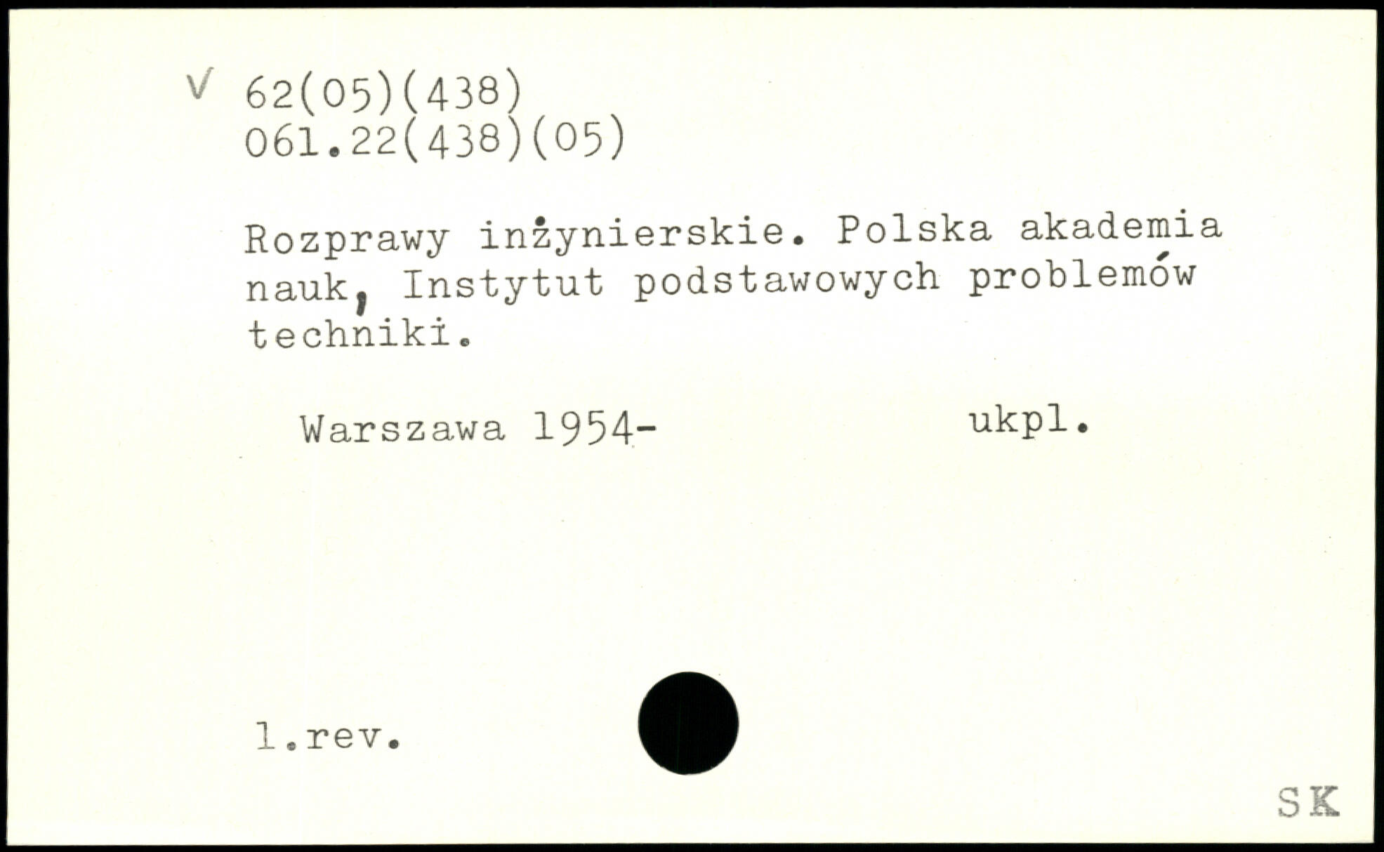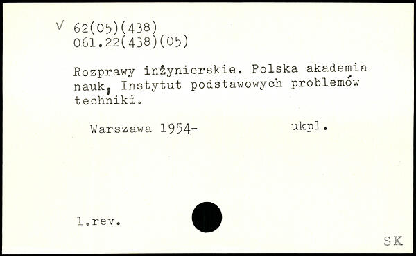 Rozprawy inzynierskie. Polska akademia nauk, Instytut podstawowych problemow techniki.