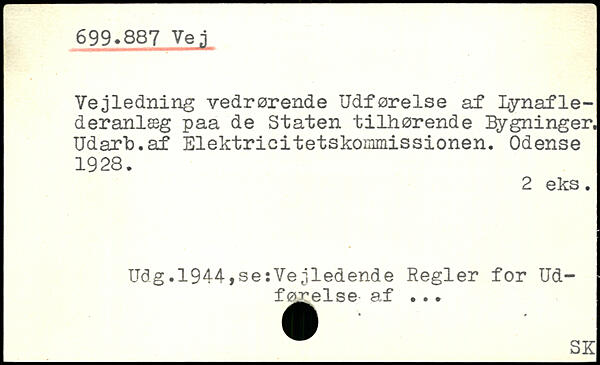 Vejledning vedrørende Udførelse af Iynaflederanlæg paa de Staten tilhørende fygninger, Udarh.af Elektricitetskommissionen. Odense 1928.