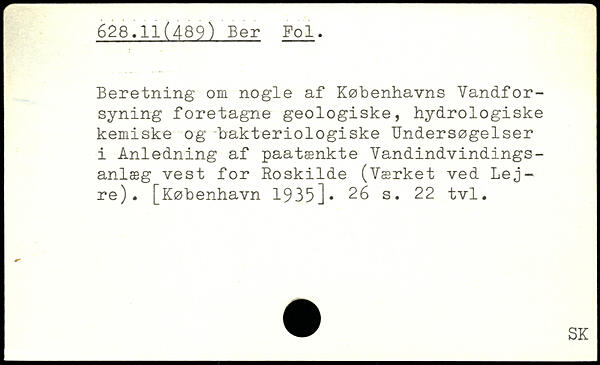 Beretning om nogle af Københavns Vandforsyning foretagne geologiske, hydrologiske kemiske og bakteriologiske Undersøgelser i Anledning af paatænkte Vandindvindingsanlæg vest for Roskilde (Værket ved Lejre).