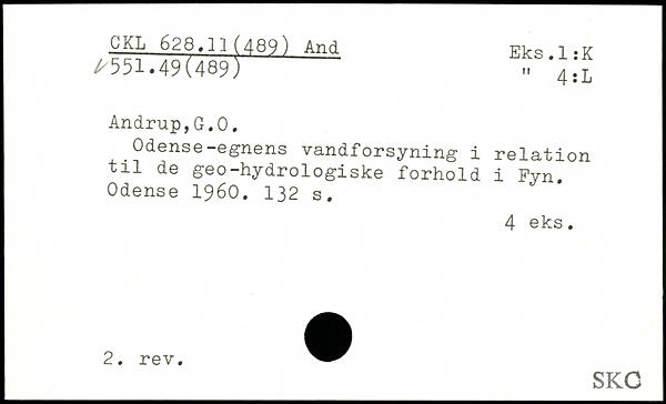 Odense-egnens vandforsyning i relation til de geo-hydrologiske forhold i Fyn. Odense 1960.